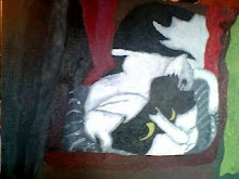 X the kitten was waiting across the road from the Meat Shop. I gave him some of the mince I had bought for dinner and he swallowed it down like water. He had been attacked by crows who punctured his trachea, and his skin had filled up with air. So he was actually only half the size and half the age I had thought he was, and it was very lucky that he was still hungry. X will come home from the Hospital on Wednesday. X has two little black dots on his nose. He looks like a little pig. I think X will have to live here.